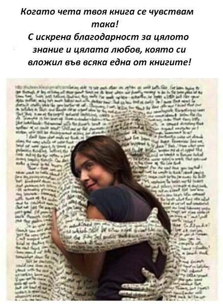 Сърдечно БлагоДаря! ...за огромното благородно дело! Вашите книги са иститски проводник на чиста жизнена енергия,прозорец към собствените ни души... Прекланям се пред мъдростта, всеотдайността и уроците през които сте преминали, за да държа в ръцете си информация в най-чист и понятен вид-пулсираща и зареждаща. Бъдете Благословен!
